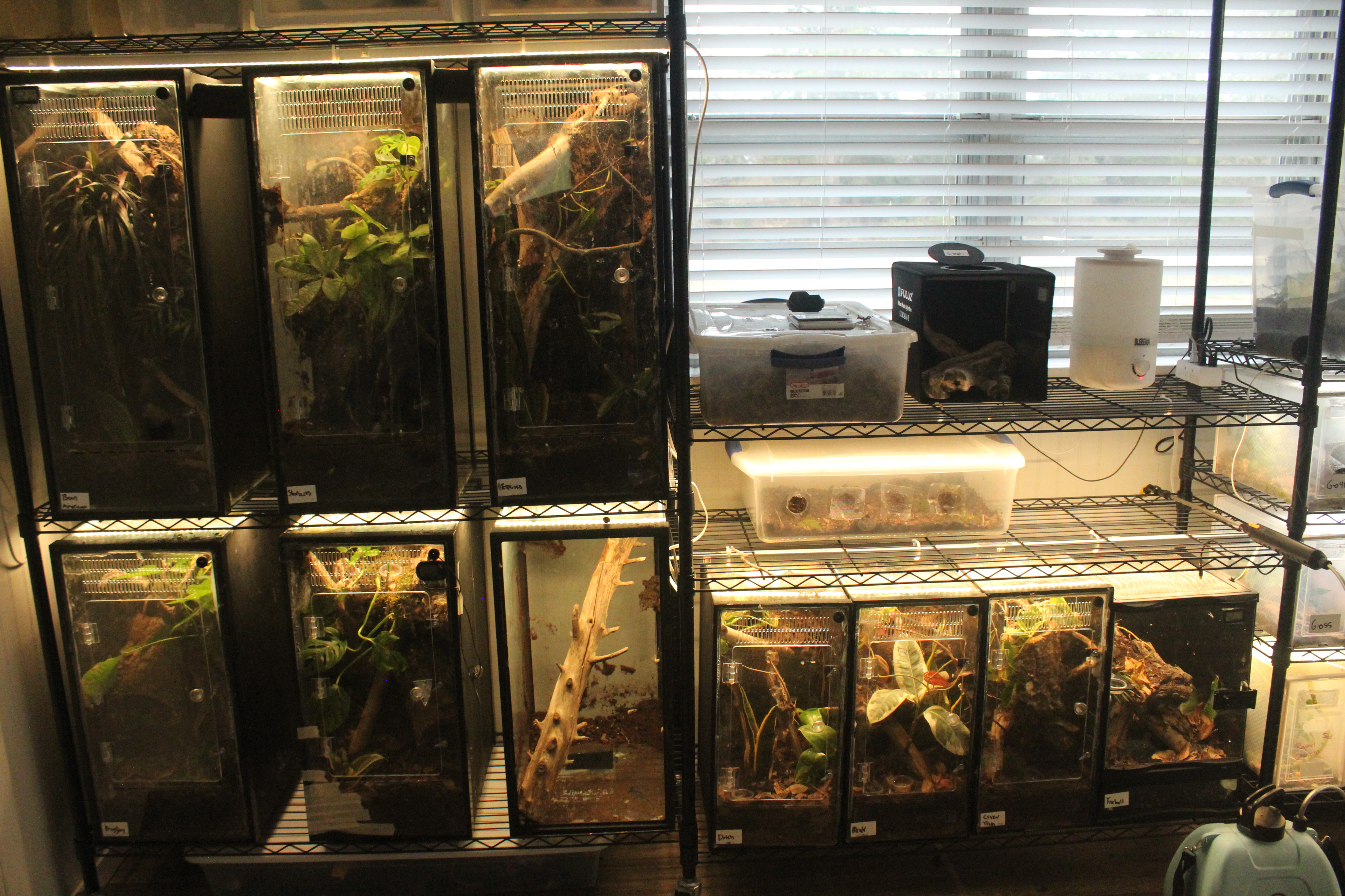 - Room lighting provides adequate day/night cycle