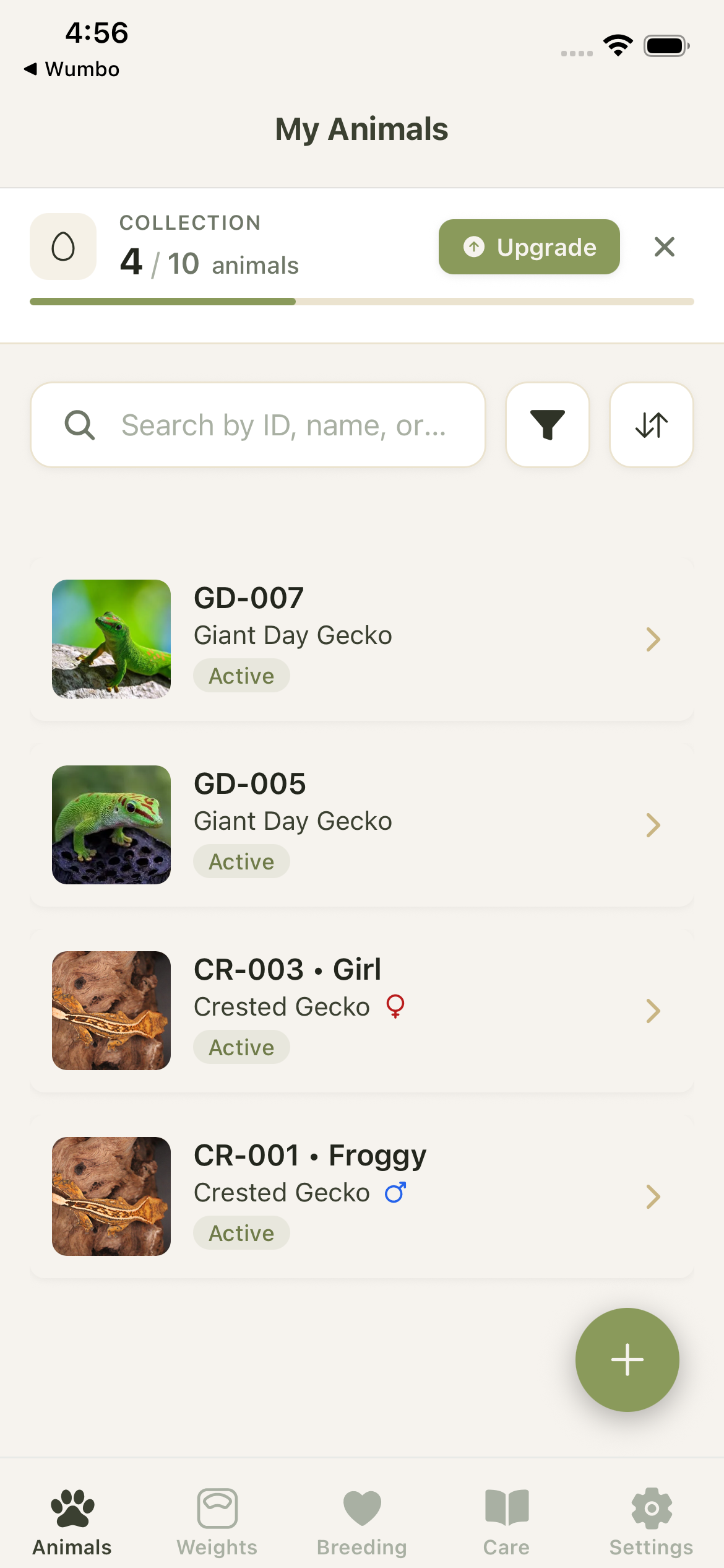 Other apps charge for every animal you add. ReptiDex uses simple flat-rate plans. Free for up to 10 animals, then unlimited animals on Pro for just $4.99/month.
