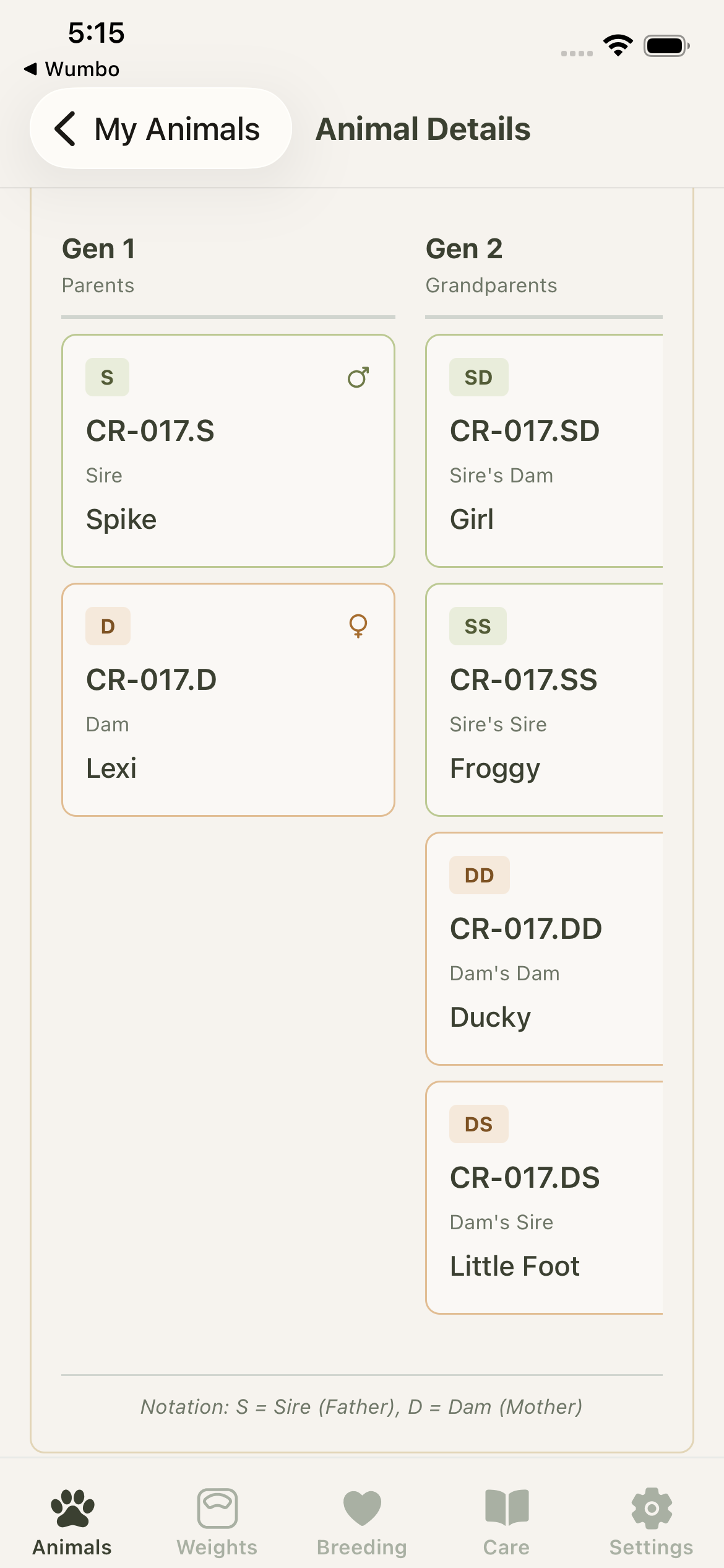 Professional pedigree displays show generations of sire and dam relationships. Give buyers the documentation they expect from a serious breeder.